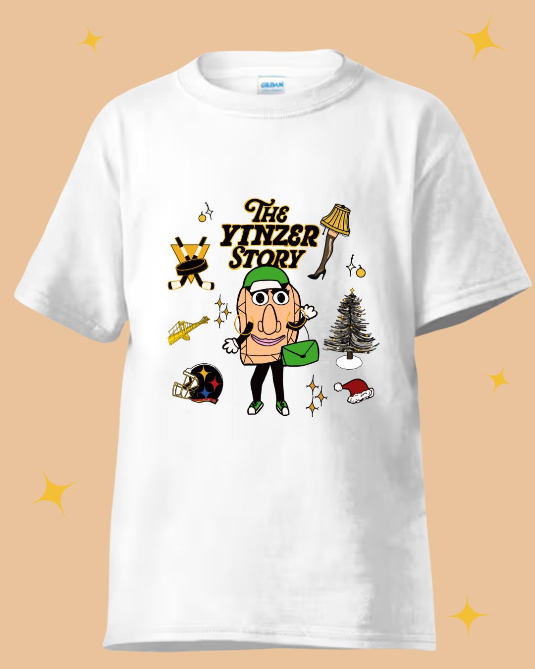 Gildan shirt with a hand-drawn design for the holiday season inspired by Pittsburgh - “The Yinzer Story”