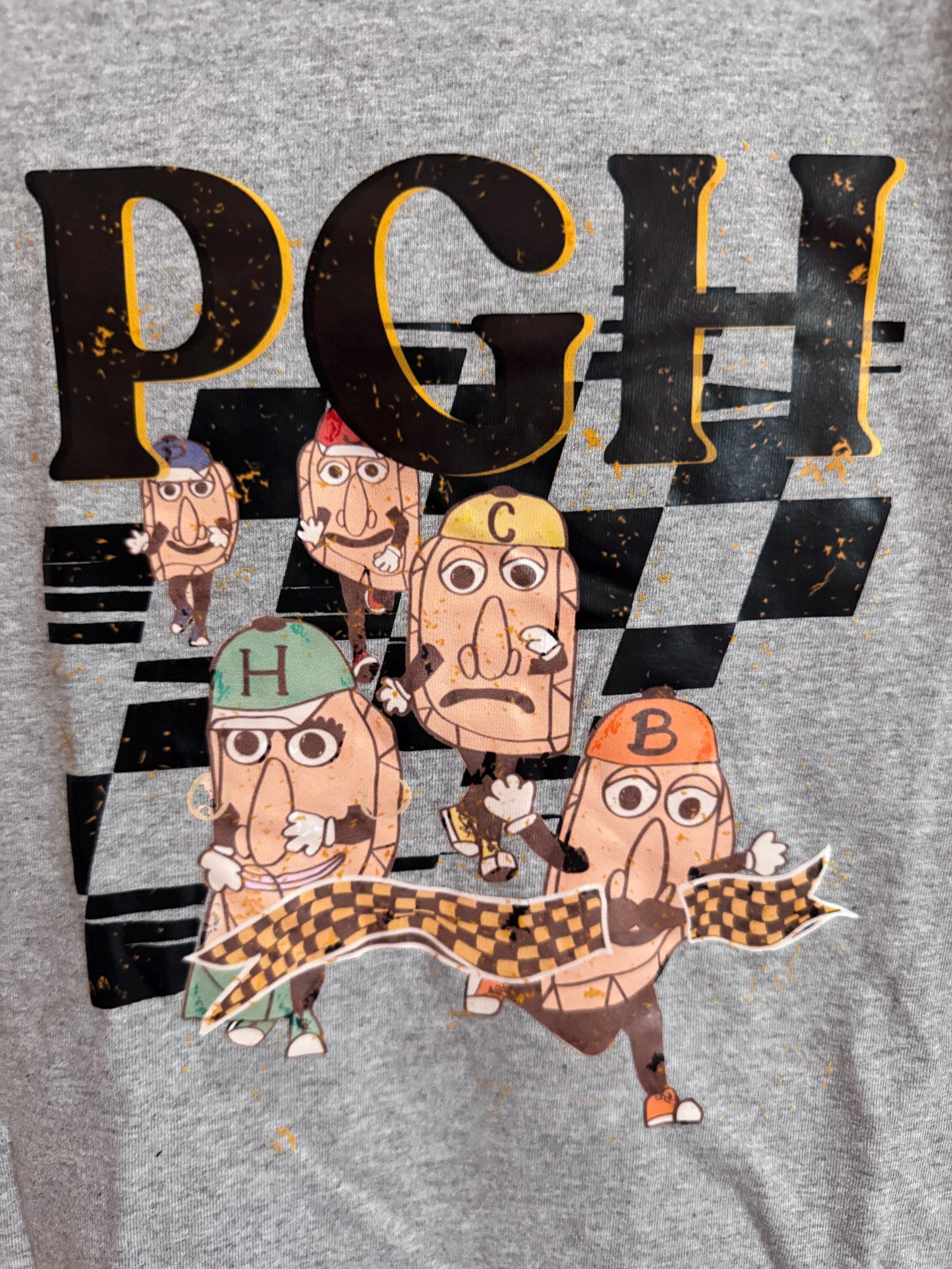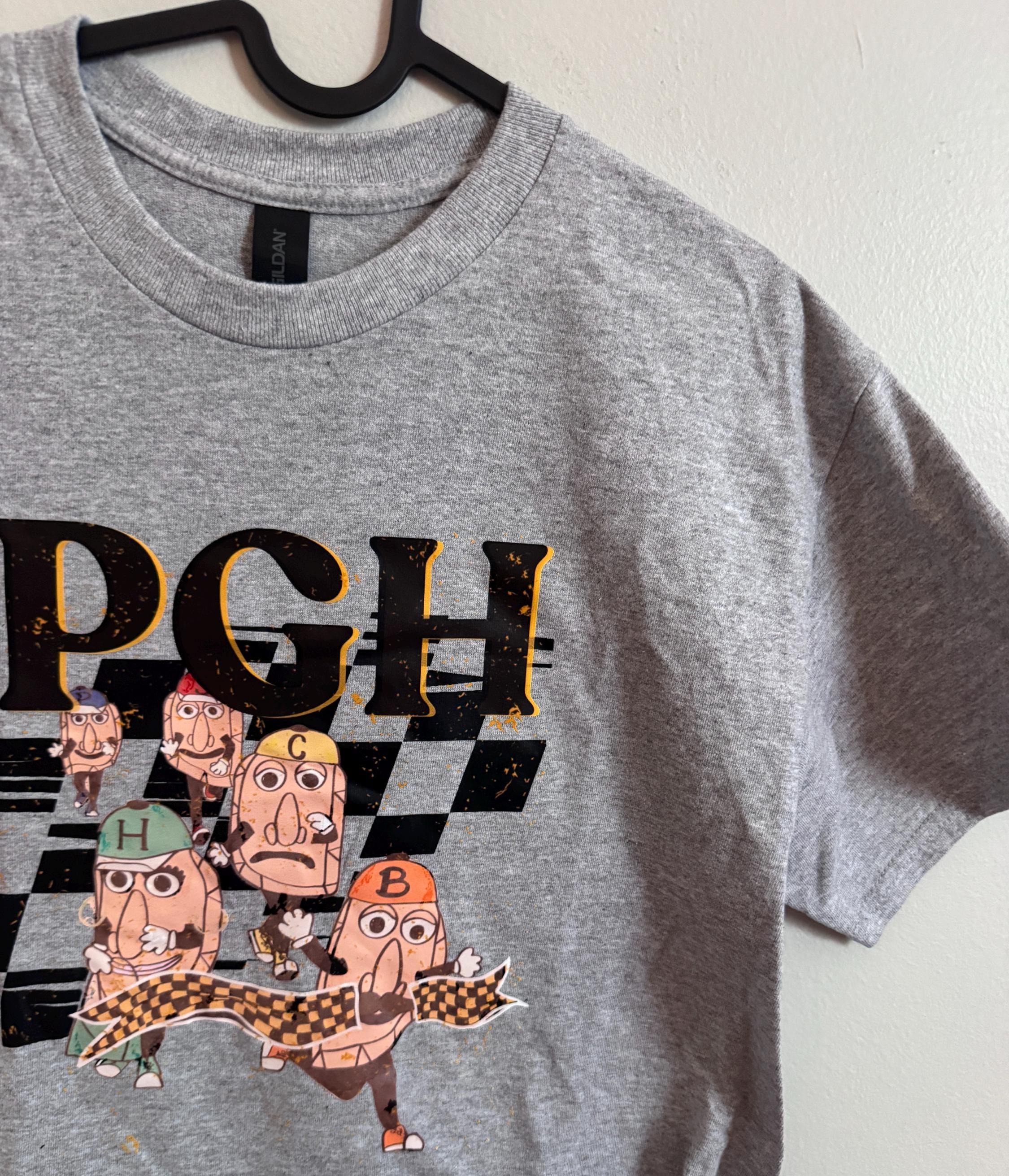 PGH Racing Pierogi Design - a hand-drawn design by AMill is pressed onto different Gildan brand t-shirts
