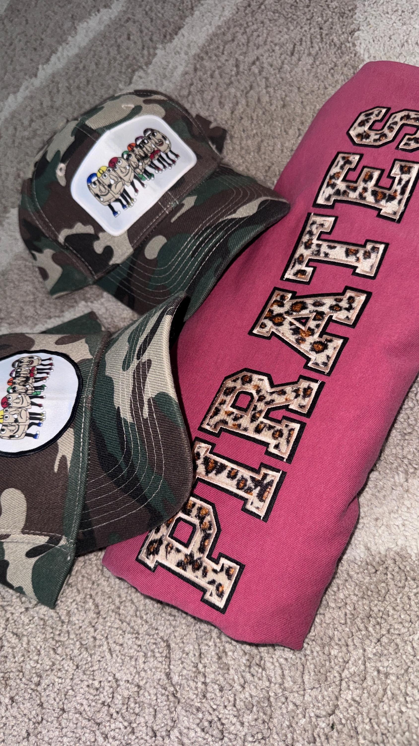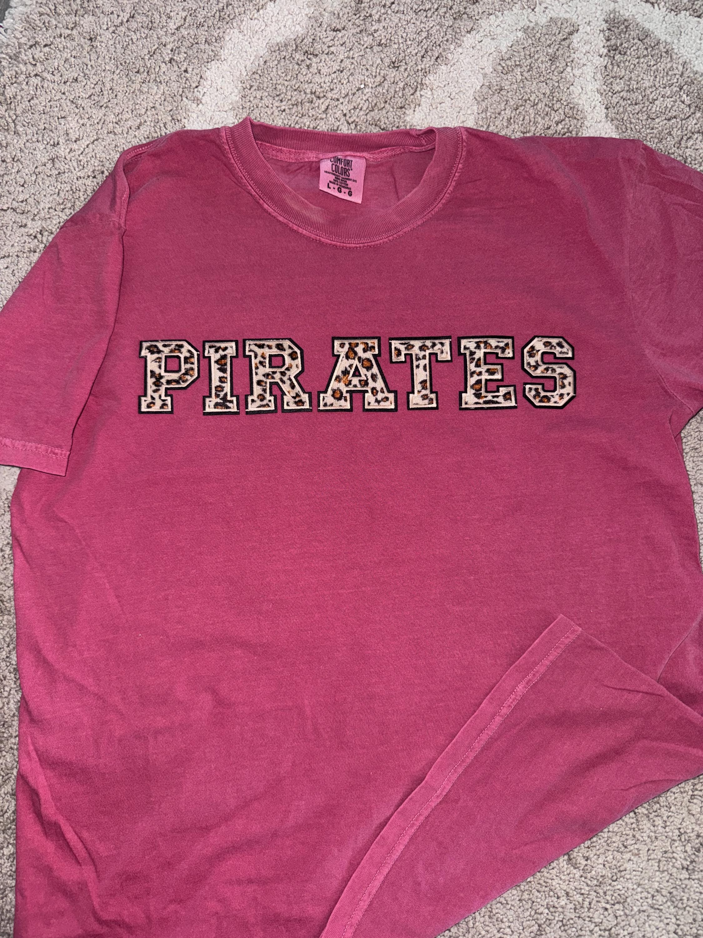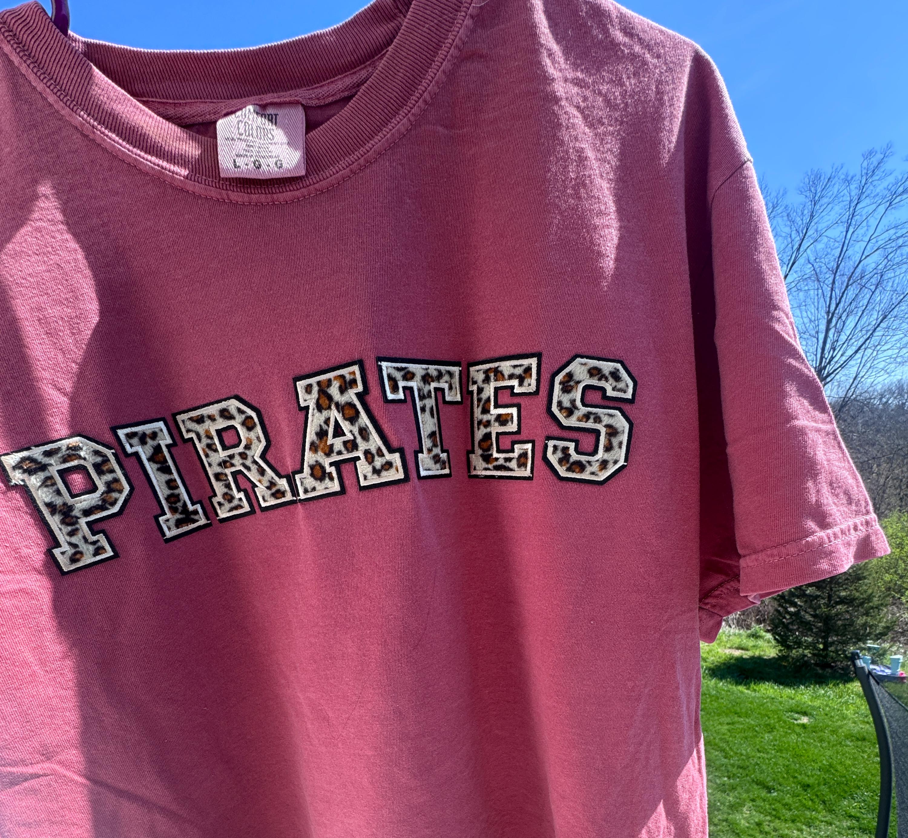 This design features "Pirates" in animal print patches!