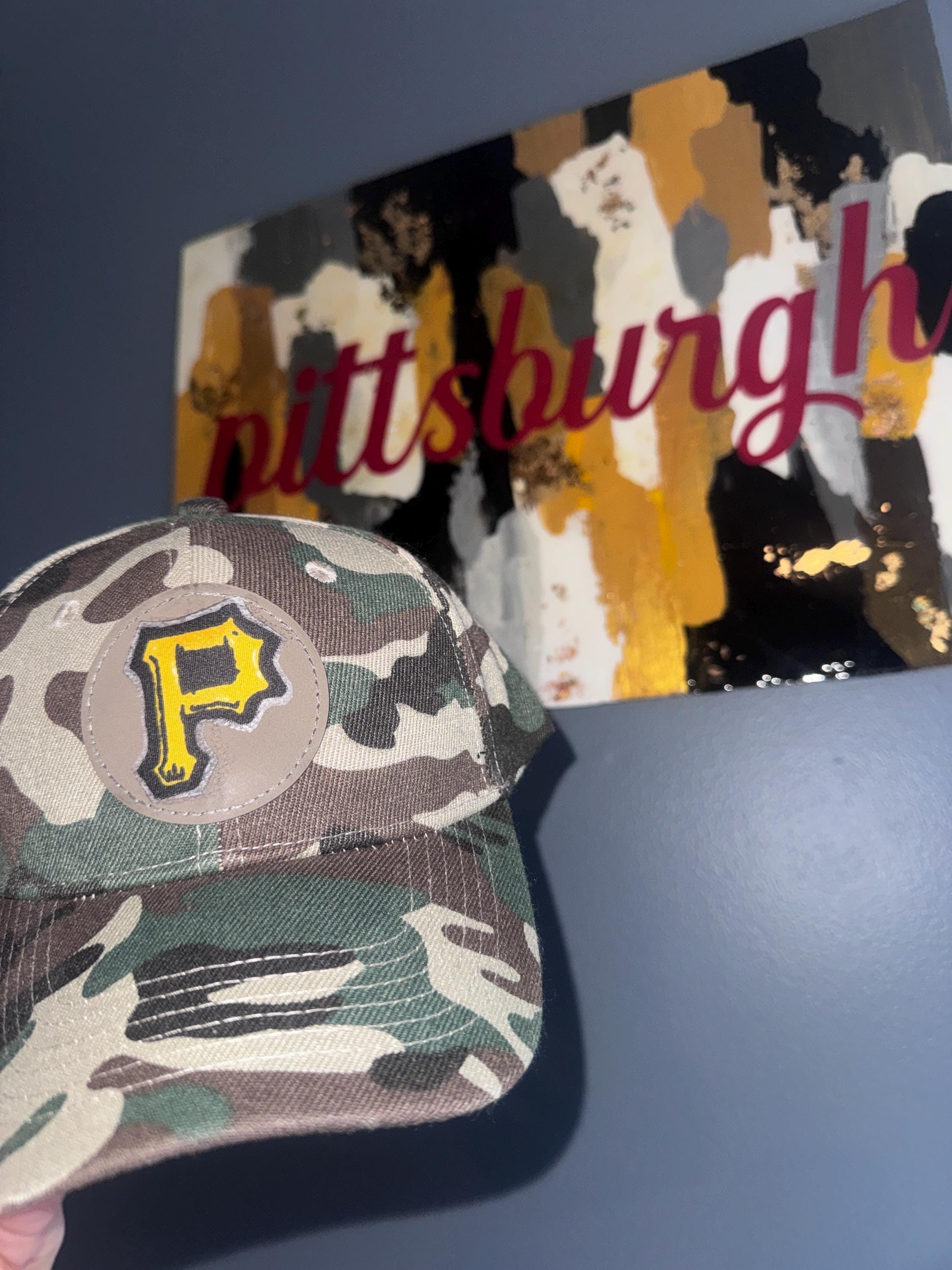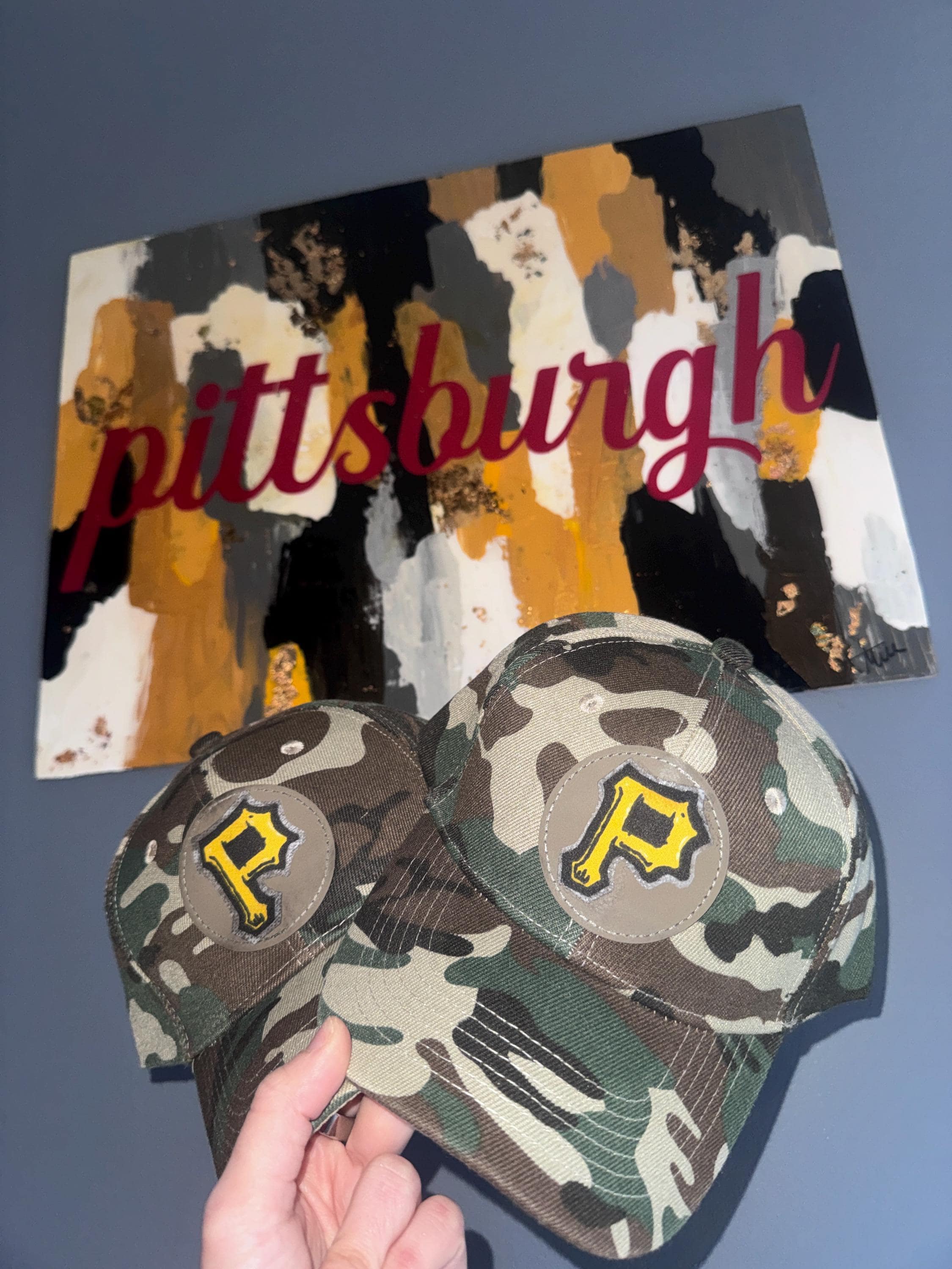 These hats are a limited drop! They are reworked from a Pittsburgh Hawaiian shirt