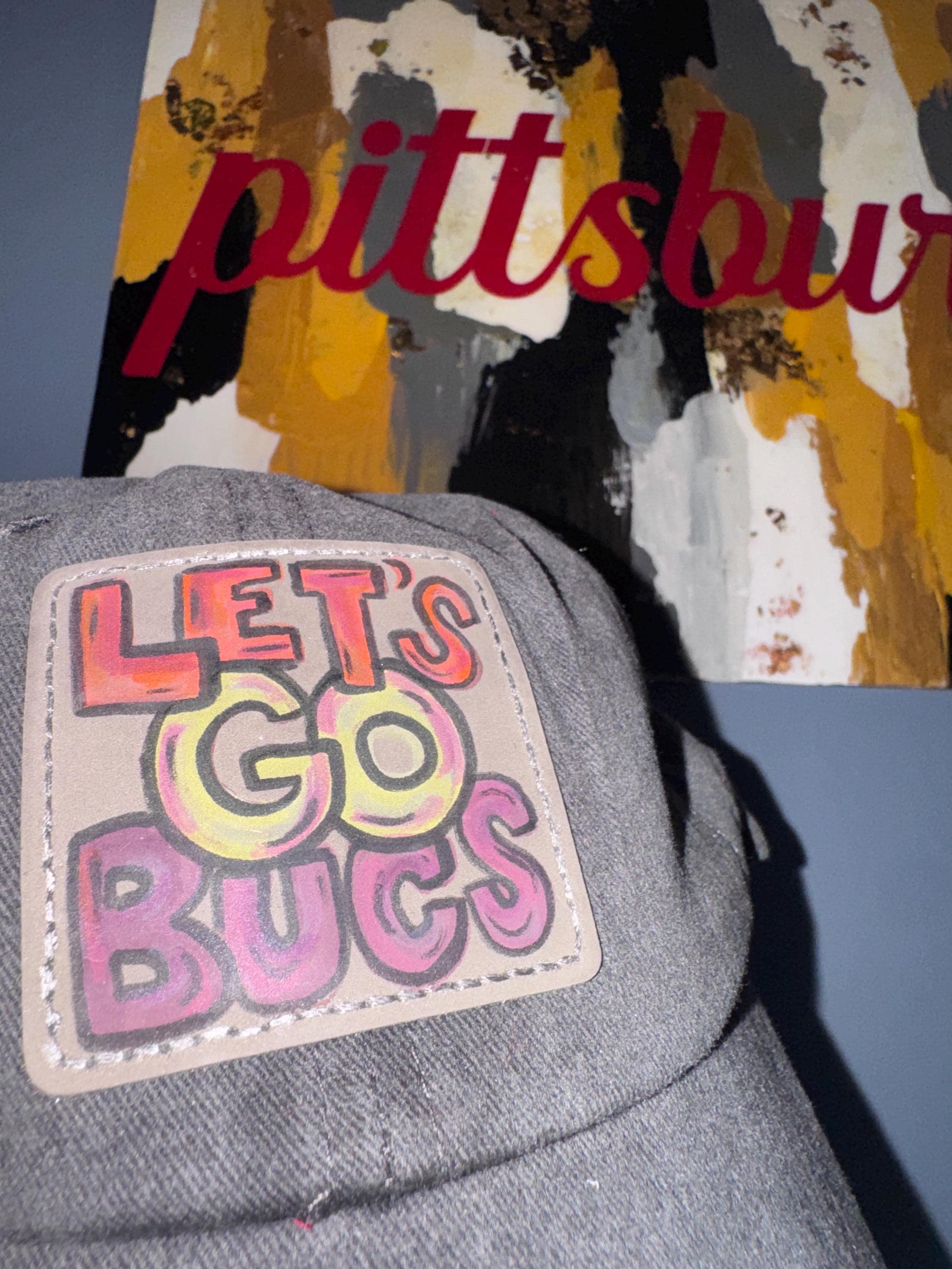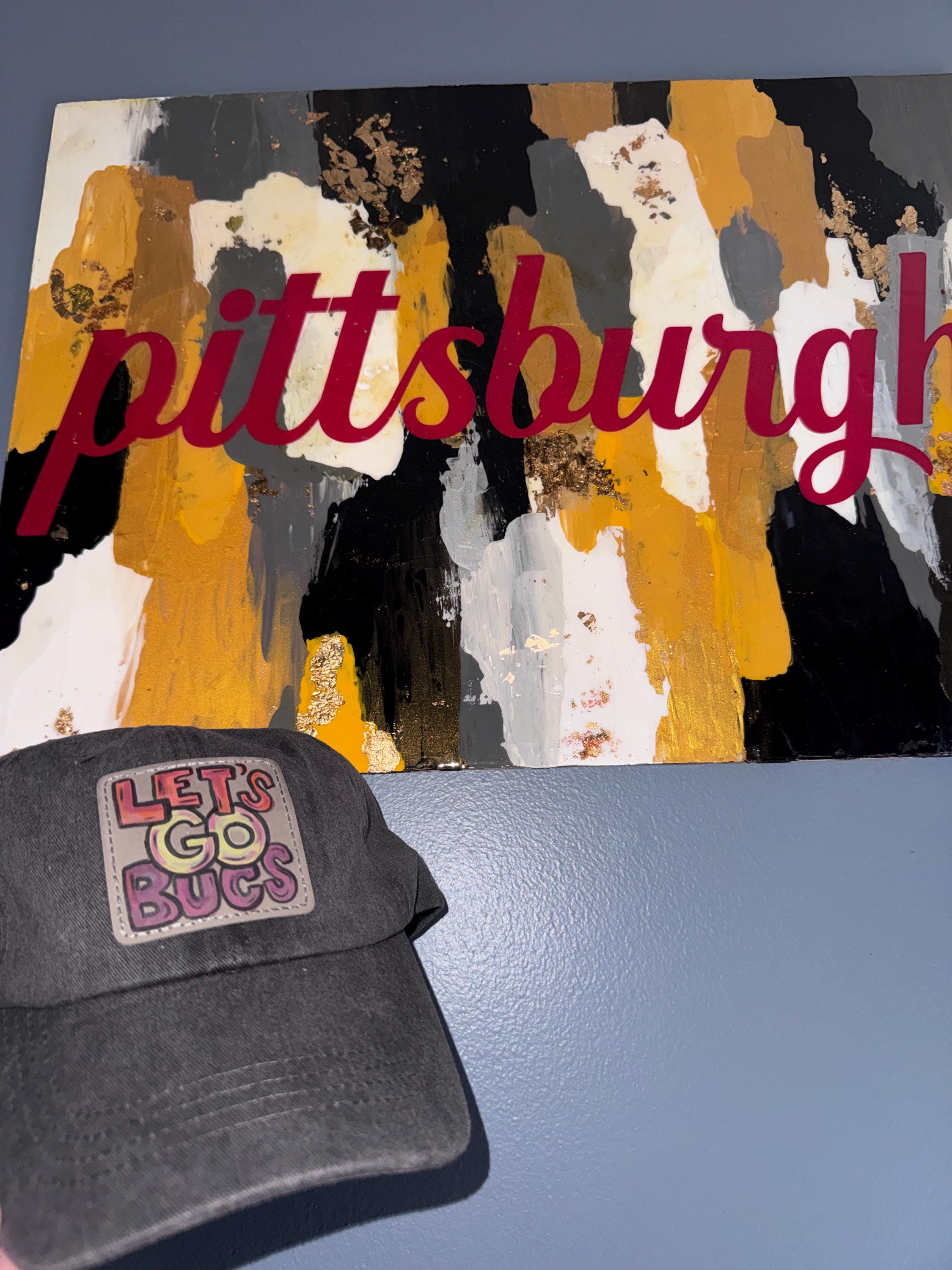 This hat is a 1of1 hand-painted patch design! This patch is hand- painted by AMill then pressed onto a vintage-style comfortable grey hat. This is perfect to wear to Pittsburgh Baseball gamestag @pipsbyamill on instagram!